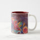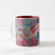 Üppige tropische Vögel auf der Außenseite, reicher Burgunder auf dem Innere. Mischen Sie nie Ihre Tasse oben mit jemand anderem wieder. Dieser einzigartige Entwurf ist von meiner ursprünglichen Aquarellmalerei.