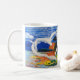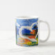 Die Tasse ist farbenfroh, dass zwei Vögel an vorderster Front fliegen (Herzkonzept). Im Hintergrund befindet sich der Strand. Es ist eine originelle Kreation oder ein originelles Kunstwerk, das sehr abstrakt sein kann. Es kann an Liebende/Liebende geschickt werden (vor allem für ganz besondere Momente), da es primär für das entworfen wurde (mit seiner abstrakten, einzigartigen Botschaft im Hinterkopf).