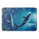 Zwei Wale schwimmen zwischen tropischen Fischen Badematte