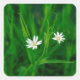 zwei weiße Blumen auf einer grünen Wiese Quadratischer Aufkleber