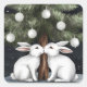 Zwei weiße Kaninchen küssen unter Weihnachtsbaum Quadratischer Aufkleber