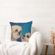Weiße Hunde, Haustiere auf einem blauen Hintergrund. Porträt. Kissen für Verkauf