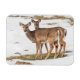 Zwei Hirsche geben dem Fotografen einen nahen Blick von ihrem grasbewachsenen Platz in einem Frühjahr-Auftaufeld.