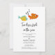 Diese Einladung enthält zwei Fische und die Phrase "Zwei weniger Fische im Meer", geschrieben in einem schönen Script-Schriftart .