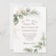 Inspiration Zitat Christliche Hochzeitseinladung zeigt ein elegantes Boho Blumengrün-Design inklusive schlichter goldgrüner und salzgrüner Blätter und Goldspritzen. Es zeigt inspirierende Einführung Bibel Verse Ephesians 5:31, "die beiden werden eins." Gute Wahl für Frühling und Sommer. Wenn Sie etwas nicht sehen oder Änderungen wünschen, kontaktieren Sie mich bitte mit dem Chat-Button auf der Zazzle-Seite.