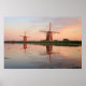 Zwei Windmühlen mit Reflektion bei Sonnenuntergang Poster