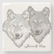 Stilvoller SteinUntersetzer mit Grafiken der Gesichter von zwei grauen Wölfen. Grauer Text ist bereit zu personifizieren, um zu lesen, was Sie wollen. Große Geschenkidee für jedermann.