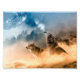 Zwei Wölfe heulen auf Vollmond im Wald Fotodruck