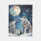 Zwei Wölfe im Winter mit Schnee, Sternen und Mond