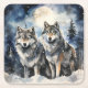 Zwei Wölfe im Winter mit Schnee, Sternen und Mond