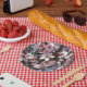 Zweig der rosa Blüten Frühlingsflora Pappteller