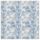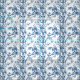 Ein faszinierendes blau-weißes Toilmuster mit gewundenen Zweigen, blühenden Blume und zarten Blätter im Vintagen Gravierstil.