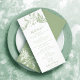 Diese exquisite Menükarte hebt eine grün-weiße Blumenausstellung als Hauptfokus hervor. Sein anmutiges und raffiniertes Aussehen ist ideal für Ihren besondere Anlass. Die gleiche Blumenschmuck wird auf weißem Weiß auf einem halbgrünen Hintergrund auf der Rückseite präsentiert, was die ätherische Atmosphäre noch verstärkt. Dieses Kartendesign vereint Farben und Blume und bringt eine elegante Touch in Ihre Hochzeitsfeier. Die Abdeckung wurde unter Verwendung einiger Elemente von Freepik.com entworfen