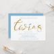 Zwei blaue Herzen, kalligraphische Zwillinge in goldener Babydusche Einladung. Mit diesen stilvollen und fröhlichen Einladungen laden Sie Freunde und Familie zu Ihrem Doppel-Baby-Duschfest ein.