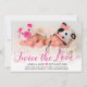 Dieses bezaubernde Foto-Geburtsankündigung für Zwillingsmädchen zeigt Ihr Baby-Foto vorne und darunter in rosa Schrift "Zweimal die Liebe", die von rosa Herzen betont wird. Unten finden Sie Ihre Babyinformationen, um sich in einem modernen, einfachen Schriftart zu personalisieren. Die Rückseite der Karte ist rosa. Glückwünsche auf Ihren Bundles der Freude! Von Künstlern entworfen