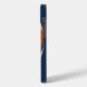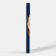 Ein abstrakt minimalistischer zeichn eines 2-farbigen Gesichts, blassorange (pfirsichfarben fuzz), dunkelbraun orange, auf einem dunkelblauen Hintergrund, der eine Person mit zwei Gesichtern symbolisiert.