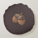 Herbstkissen mit Kürbis auf der einen Seite und Eicheln auf der anderen, beide auf dunkelbraunem Hintergrund. Große Herbst- und Erntedank-Zuhause-Dekoration.