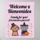 Feiern Sie Halloween mit diesem zweisprachigen Spanischen-Englischen Zeichen. Das Design ist mit einem niedlichen kleinen Halloween-Hund und einer Maus ausgestattet, und der Text "Welcome y Bienvenidos" oben, sowie die Worte "Candy for you" und "Caramelos para ti". Ideal für ein zweisprachiges Klassenzimmer oder für eine lustige Dekoration für ein Party oder für Trick oder Trainer! Un póster lindo para feierliches Halloween, decorado con un perro y una gata.