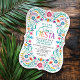Mariachi, Margaritas und Erinnerungen! Lassen Sie die Fiesta mit diesem mexikanischen Volkskunst-Fiesta-Design entfalten. Der farbenfrohe Text und das Kunstwerk (das von Lively Scribe selbst handgezeichnet wurde) verleihen diesem Design ein charmantes und dennoch elegantes Ambiente. Ideal für den Latinx in deinem Leben. Oder ein Party, das einfach bequem zu Cinco de Mayo oder Dia de los Muertos nah ist. Bestellen Sie Ihre gedruckten Einladungen und Party oder laden Sie Ihre digitalen Einladungen jetzt für einen Tag, den sie nie vergessen werden!