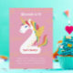2-nicorn Illustration der Nummer 2 Einhorn mit Regenbogenhaar und Goldhorn, Flügel mit goldenen Sternen; benutzerdefinierte Farbe auf der Vorder- und Rückseite.