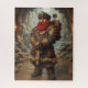 Bild eines Zwergs oder Mostalis mit rotem Bart, eiserner Rüstung und einem Steampunker-Kreuzbogen im Stil von Glorantha RuneQuest stehend in einer Höhle voller goldfarbener und silberner Adern. Von Martinspixs