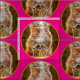 Zwergkatzenkatze mit geschmolzenem Geburtstagskuch Stoff