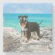 Zwergschnauzer auf dem Strand Aquarell Steinuntersetzer