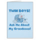Stolze neue Großmütter der Doppelbabyjungen sind Liebe dieser niedliche blaue Entwurf, der zwei Häschen in einer blauen Korbwiege kennzeichnet und blauer Text, der "liest, fragen mich über meine Enkel!".
