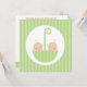 Stilvolle Babydusche-Einladungen mit einer ansprechenden Abbildung von zwei Babys in einem Schirm auf einem Streifen Hintergrund. Perfektes Design für Ihre Twin Babydusche. Art © Cocoa Studio