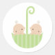Zwillinge im Regenschirm Runder Aufkleber