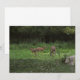 Zwei Baby-Schwanzrotwild und ihre Mutter, die einen Imbiss in unserem Seitenhof essen.