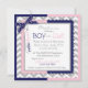 Süßer Polkapunkt-Druckpullover mit einem rosa Tutu und Pullover mit einer Marineblau-Krawatte auf Clothesline und Bogen 3D-look und Band für Doppelmädchen- und Jungenbabyduschen-Einladungskarte.