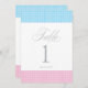 Rosa und blaue Tischnummer-Karten, die perfekt für Babydusche, Taufen und Geburtstage sind.