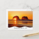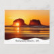 Ein farbenfroher Rockaway Beach, Oregon Postkarte mit Twin Rocks bei Sonnenuntergang.