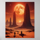 Zwei brillante Sonnen Set über eine endlose Alien Wüste. Eine surreale und farbenprächtige Science Fiction, die entfernte Welten zum Leben erweckt.