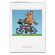 Ein Vogel auf einem Fahrrad hat ein Nest für einen Korb, während sie in Bewegung ist.