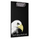 Zwischenablage in schwarzem Hintergrund mit einer Grafik eines Amerika Bald Adlers, sowohl vorne als auch hinten bedruckt, zusammen mit der gleichermaßen kühnen Aussage von "Give me Liberty or Give me Death". Passen Sie dieses Objekt an oder kaufen Sie einfach, wie es ist.