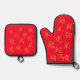 Zwölf chinesische Sternzeichen in Gold auf Rot | Ofenhandschuh & Topflappen-Set