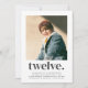 Eine moderne Einladung zum 12. Geburtstag mit eigenem Foto und dem Wort "zwölf" darunter. Sie können auch alle Textfarben und -stile bearbeiten - klicken Sie einfach auf die Schaltfläche 'Personalisieren' -> 'Bearbeiten mit dem Designwerkzeug'.
