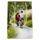 Zwei Rennradfahrer genießen die Landwege von Wales. Wasserfarbe
