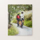Zwei Rennradfahrer genießen die Landwege von Wales. Wasserfarbe