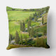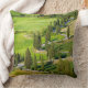 Wurfskissen einer Zickzackwicklung, Zypressenbaum zeichnete Straße durch die grünen Felder in Monticchiello, Toskana in Italien.